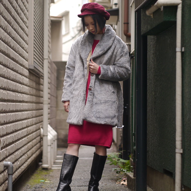 チンチラのようなモコモのフェイクファーコート。