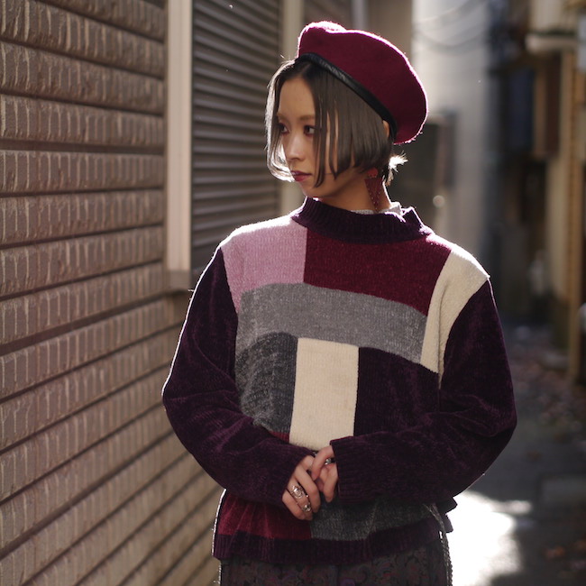 ハーフジップリブニット。
