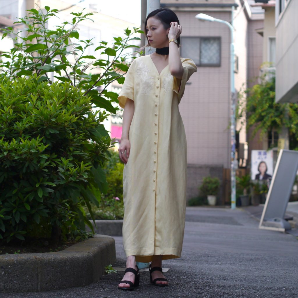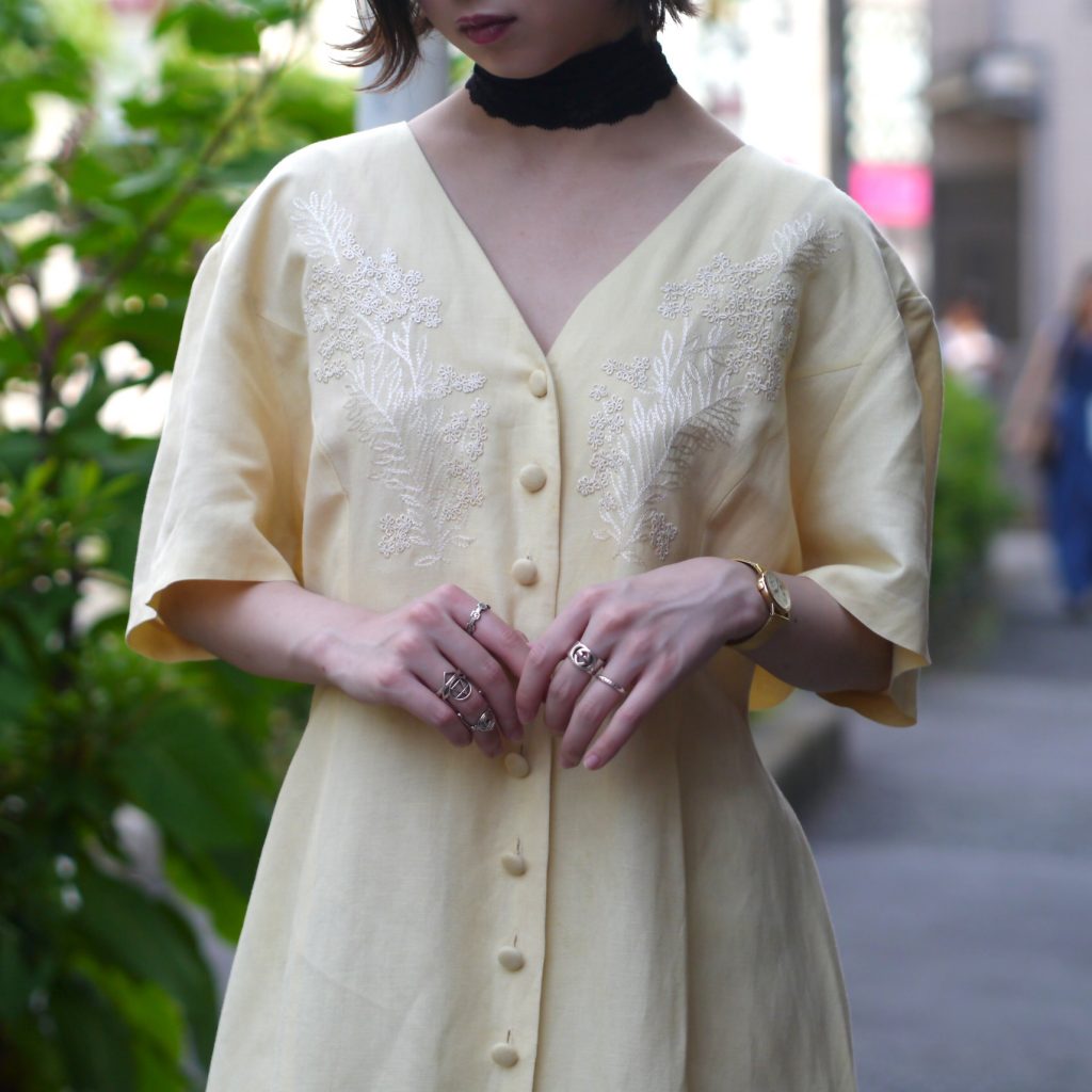 胸元のさりげない刺繍と淡いクリームカラーがキュートな