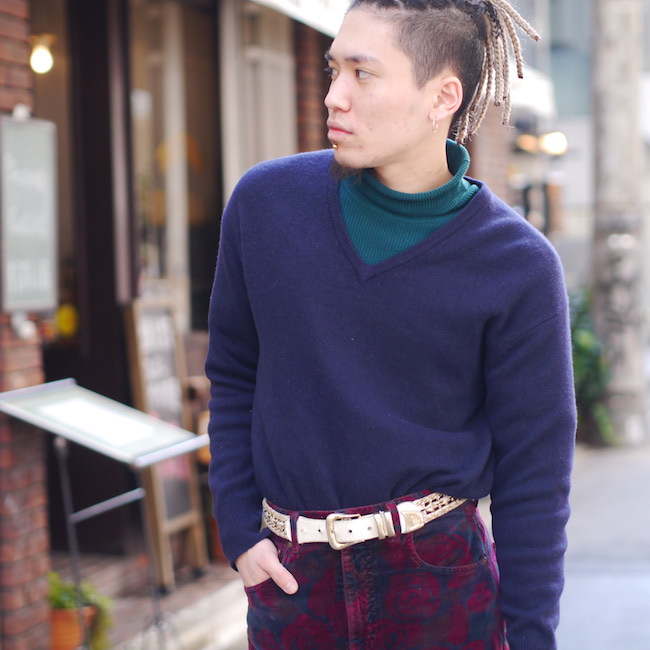 Vネックだとレイヤードも楽しめるのでオススメです。
