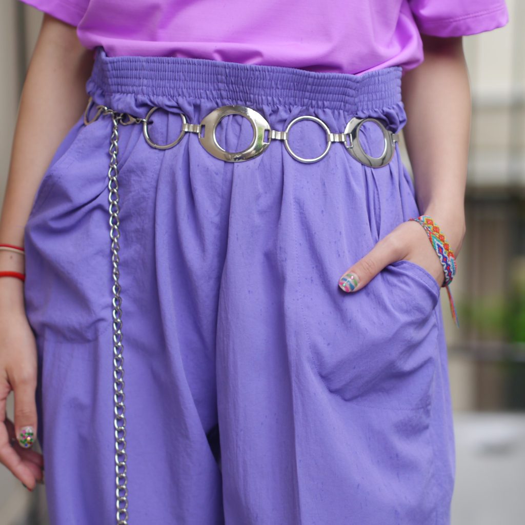 パステルなパープルカラーがCUTEなイージーパンツ。